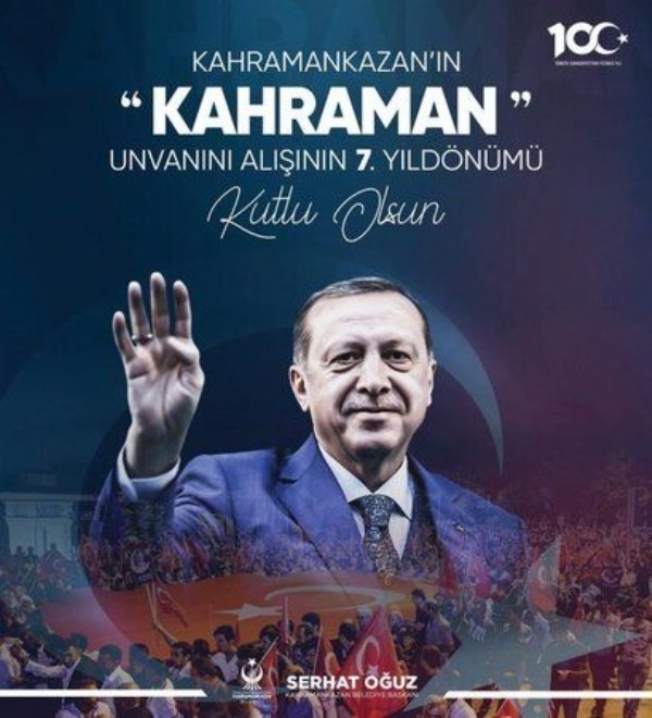 Kahramankazanlılar, 15 Temmuz 2016'da FETÖ darbe girişiminin merkezi olan 4'üncü Ana Jet Üs Komutanlığı'ndan (Akıncı Üssü) kalkarak sivil halkı, TBMM'yi ve devlet kurumlarını bombalayan F-16'ları engellemeye çalışırken, darbeciler tarafından açılan ateş sonucu 9 şehit, 92 gazi vermişti. Kahramankazanlıların verdiği bu destansı mücadele sonrası TBMM'deki tüm partilerin oy birliği ile Kazan ilçesi "kahraman" unvanına layık görülerek, ismi Kahramankazan olarak değiştirilmişti. İlçe sakinleri, halkın vatanına, demokrasisine ve özgürlüğüne olan bağlılığını sergileyerek darbe girişimini püskürtmeye çalışan hainlere karşı kararlı bir duruş sergilediler. Bu kahramanca direniş, TBMM tarafından Kahramankazan ilçesine "KAHRAMAN" unvanının verilmesine yol açtı. Kahramankazan'a "Kahraman" unvanı verilişinin bu sene 7'inci yılı.