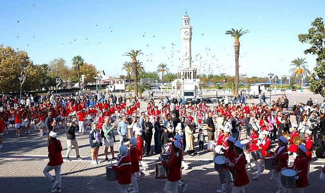 Bu özel etkinlikte, Cumhuriyet'in ruhunu ve coşkusunu yaşatan genç bando takımları, İzmir halkına unutulmaz anlar yaşattı. Cumhuriyet Bayramı'nın coşkusu yüzlere yansıdı.